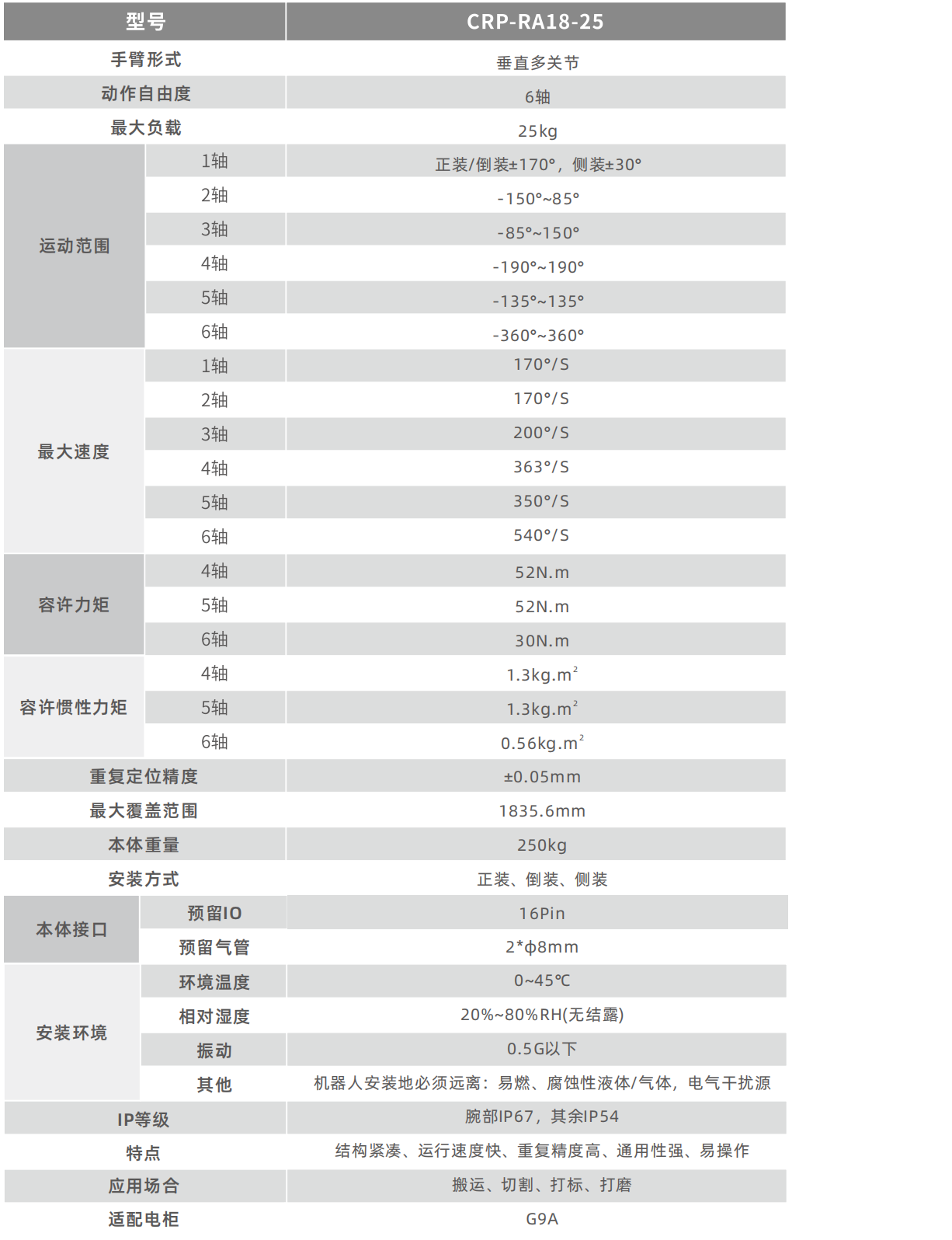 机器人整体结构高度紧凑、轻量化,更加轻巧适用,尤其腕部更加小巧,满足更多的场景。