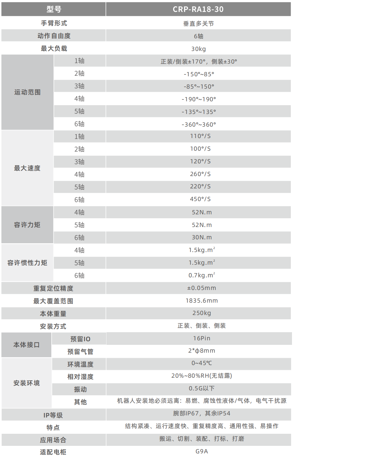 • 机器人整体结构高度紧凑、轻量化,更加轻巧适用,尤其腕部更加小巧,满足更多的场景。
